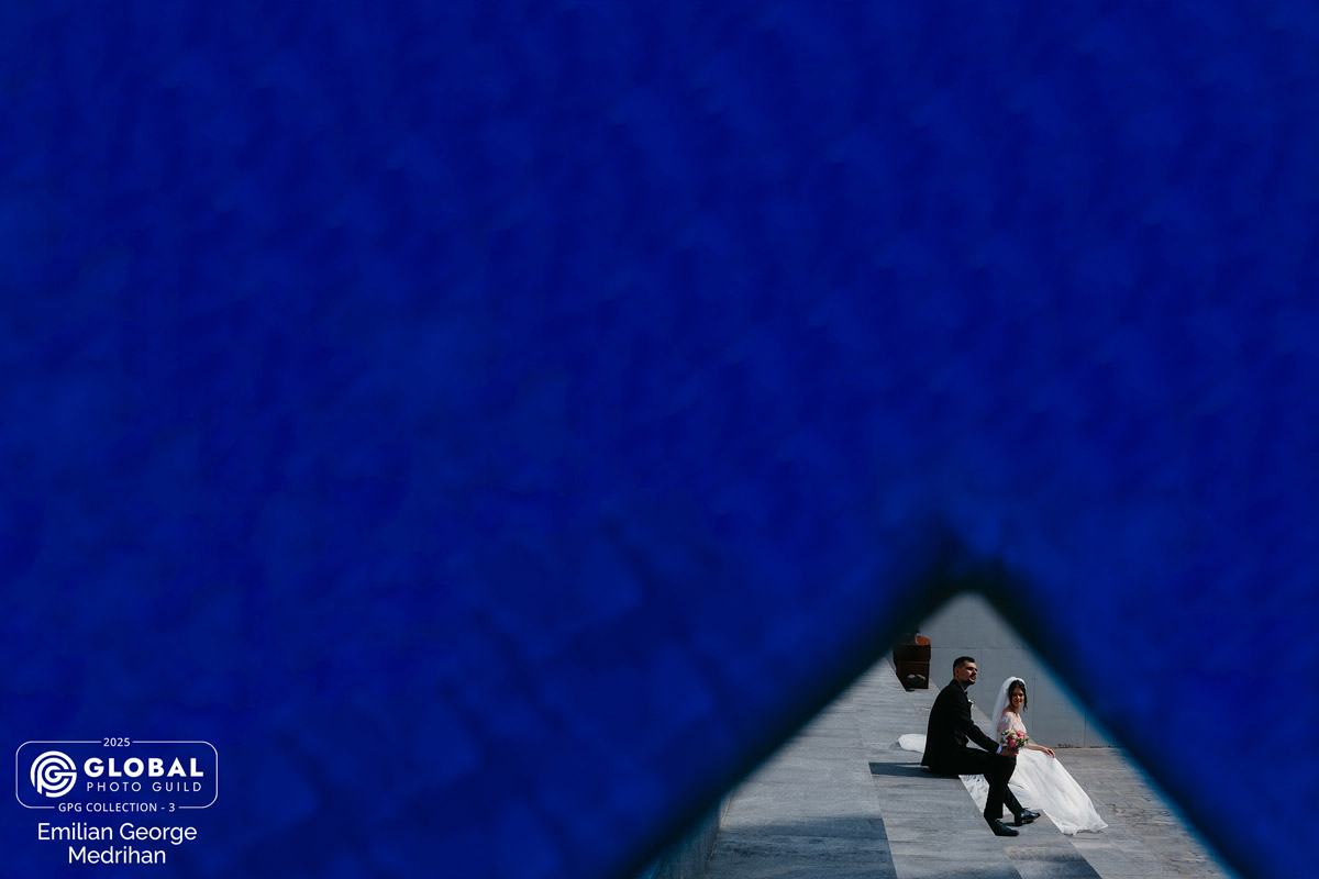 Razvan & Claudia – their love could be felt in every glance. During the photo session, I noticed these stairs, and above them a wall with a beautiful shade of blue. I chose to capture this frame—and it turned into something truly special.