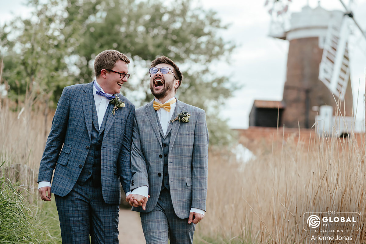 Cley Windmill, Norfolk UK. We went for a walk to give these two handsome men time to take it all in and celebrate their love together. I have never had a couple who laugh so much and enjoy life together. These two hold a very special place in my heart