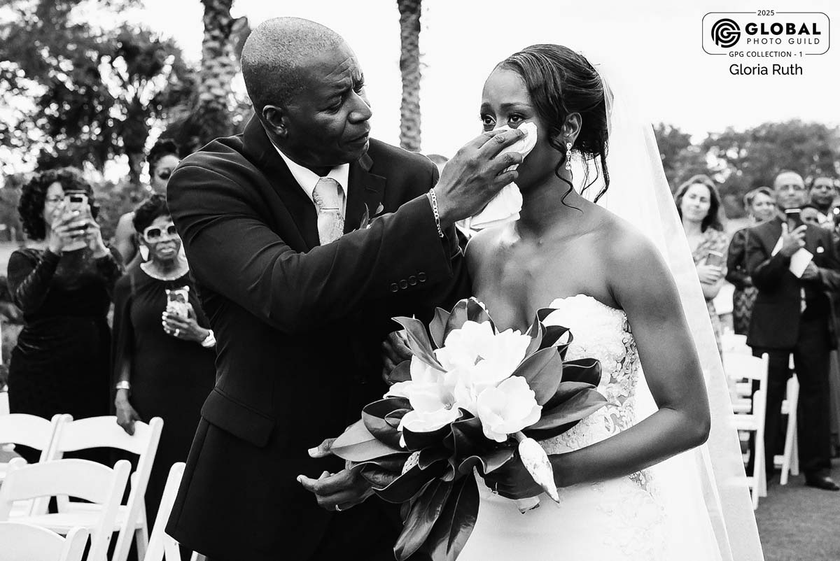 Photo DescriptionMoment between bride and her father during wedding ceremony.