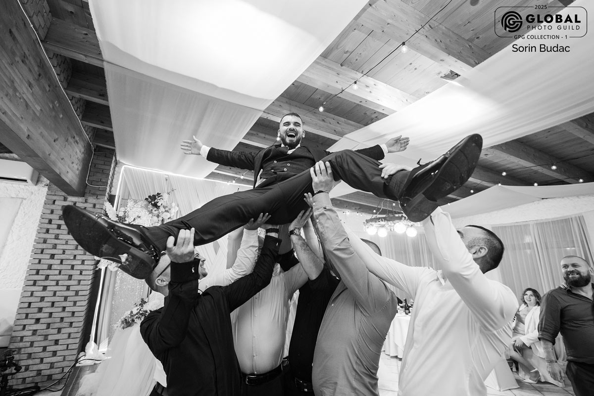 place : north Italy , moment of the wedding party from last year ,for happiness and funny moment the friends throw up the groom.