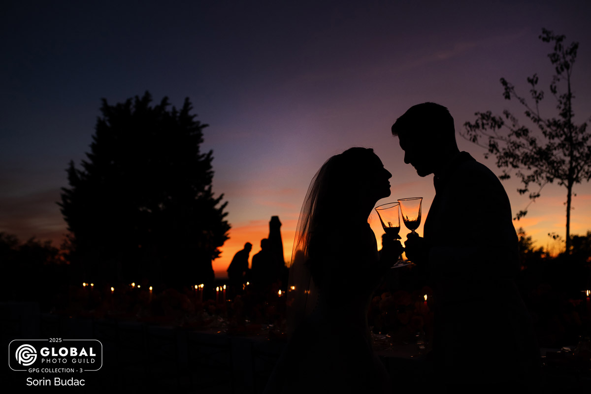 a silhouette shoot of the bride and groom from the ceremony in Tuscany Italy.